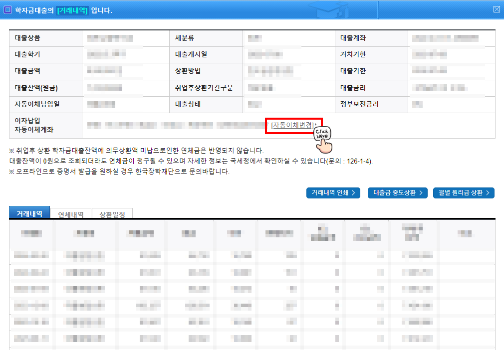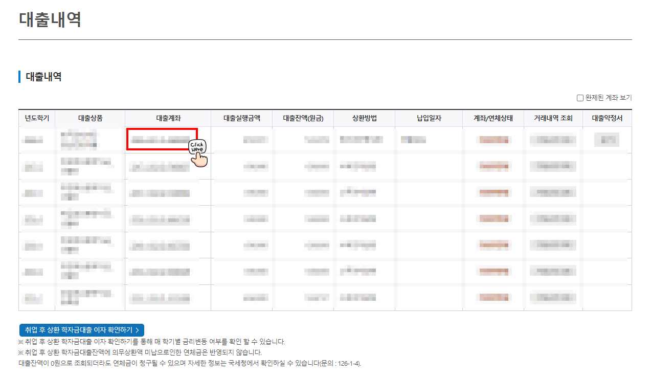 학자금대출 상환 - 대출내역 버튼을 누릅니다.