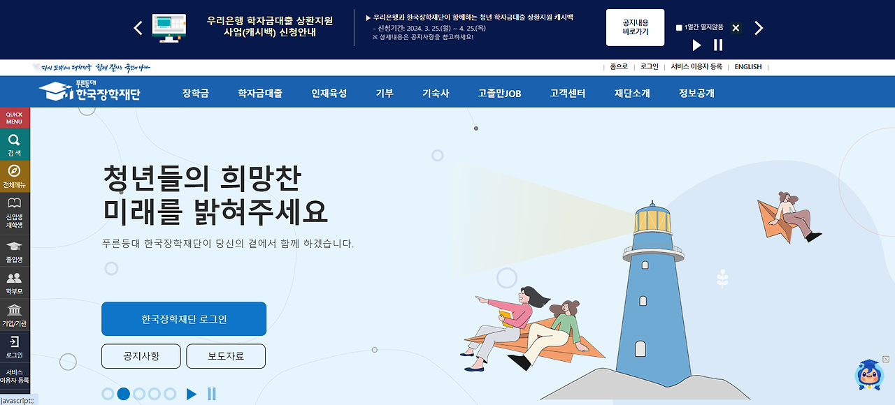먼저 한국장학재단 홈페이지에 접속합니다.